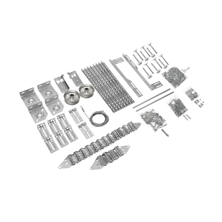 Transforma tu puerta seccional levadiza con nuestro kit de herraje completo. Este kit incluye todo lo necesario para una instalación fácil y eficiente, asegurando un funcionamiento suave y duradero.